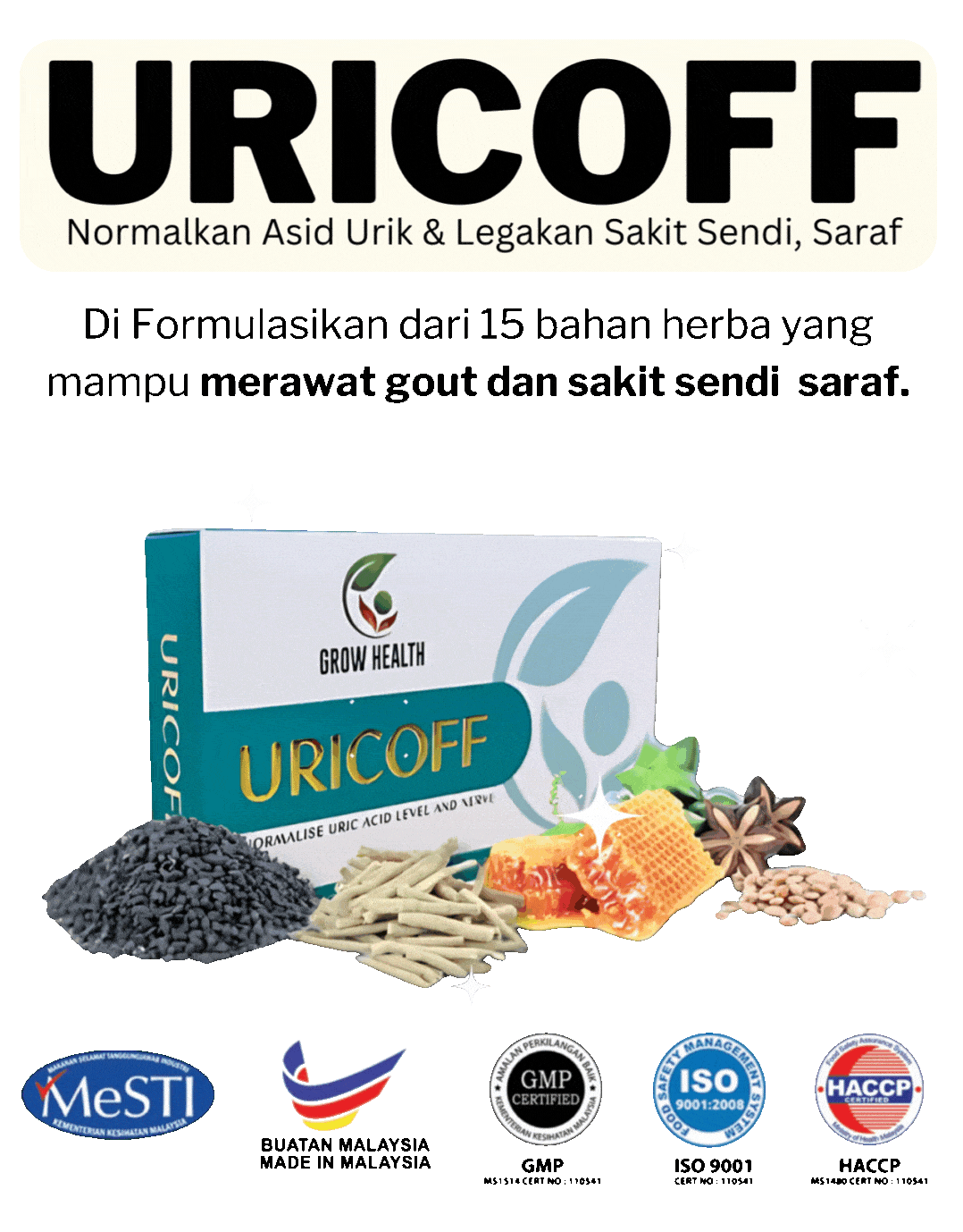 Tidak! Ubat Gout URICOFF dikeluarkan dari kilang yang mempunyai SIJIL dari KKM dan kementerian
